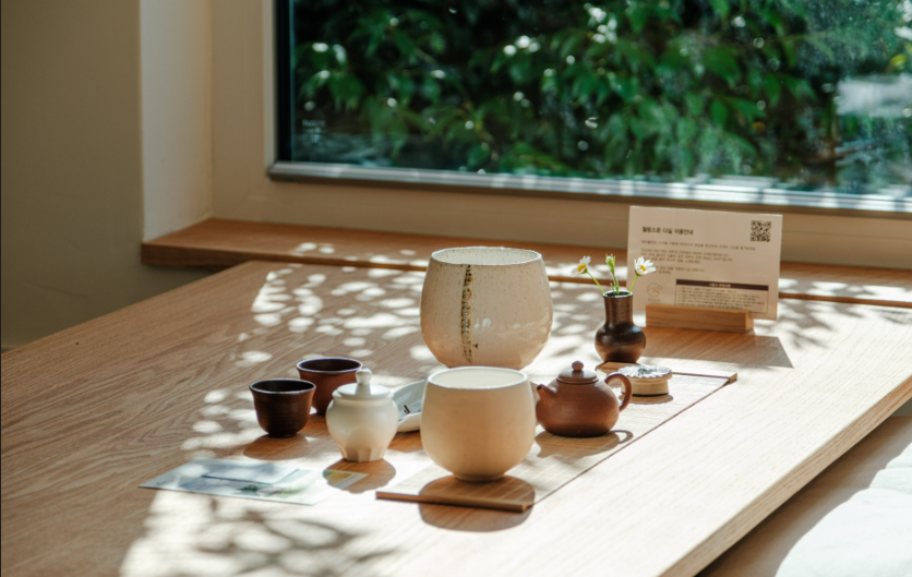 홀츠클로츠 핸드드립 세트와 신선한 원두, 다도 세트와 제주 로컬 차가 준비되어 있습니다. 편안한 분위기 속에서 다도 시간을 즐기며, 차분한 마음을 찾는 시간을 가져보세요.