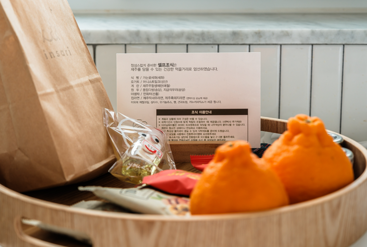 정성스럽게 준비한 셀프 조식은 제주를 담을 수 있는 건강한 먹거리 엄선했습니다. 소소한 먹거리와 함께 행복한 시간을 보내며, 제주에서의 소중한 순간들을